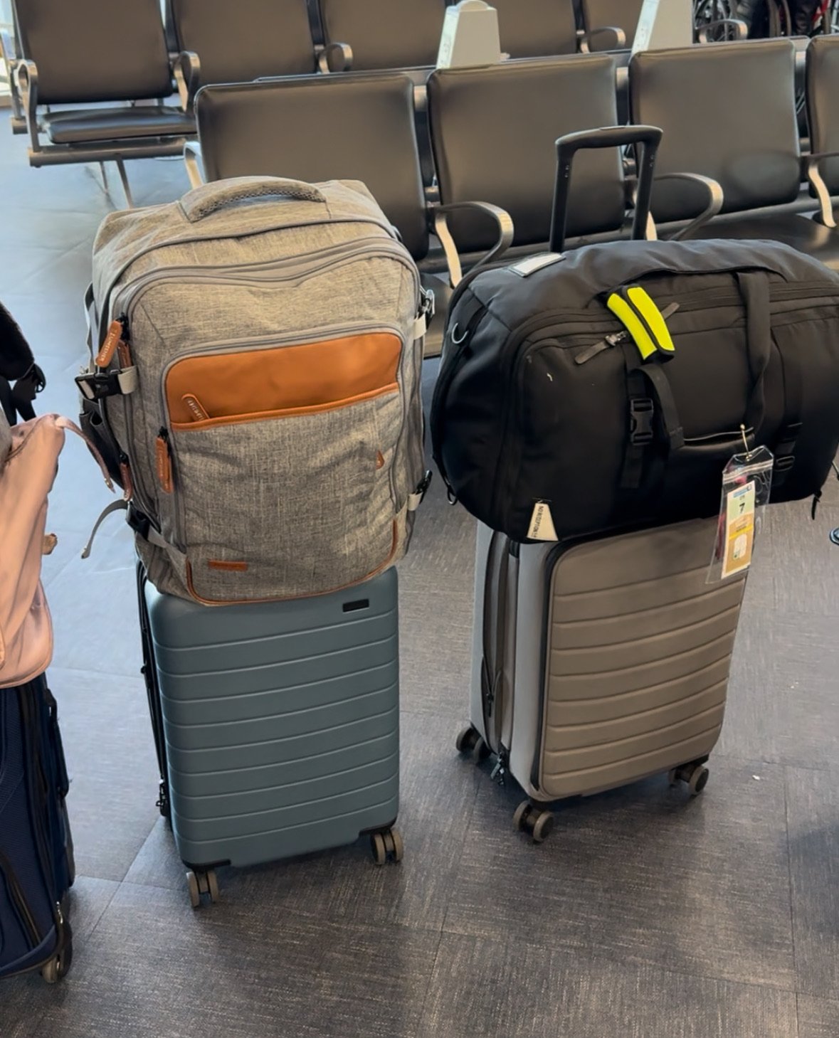 Here is how our family of 7 does carry on only. 3 AWAY carry on bags and then the kids have their rolling backpack/ suitcase.